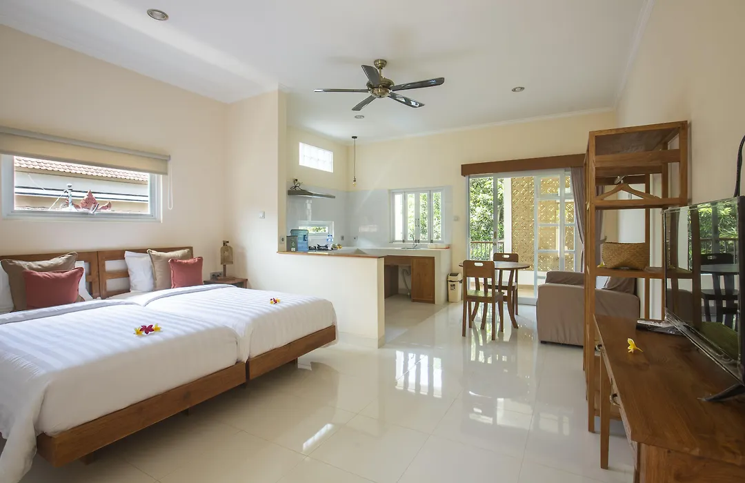 Las habitaciones incluyen climatizador, además de comodidades modernas como TV de pantalla plana con canales vía satélite. Bidé, ducha a ras de suelo y un inodoro separado, así como nevera y estufa están disponibles. El Bed and Breakfast Donguri House Bali tiene vistas al jardín.